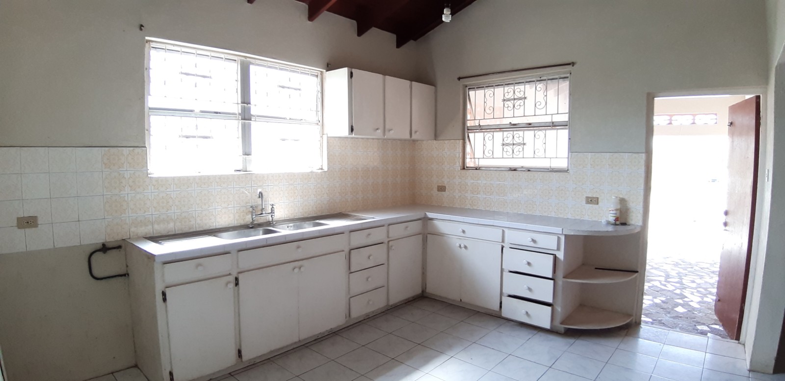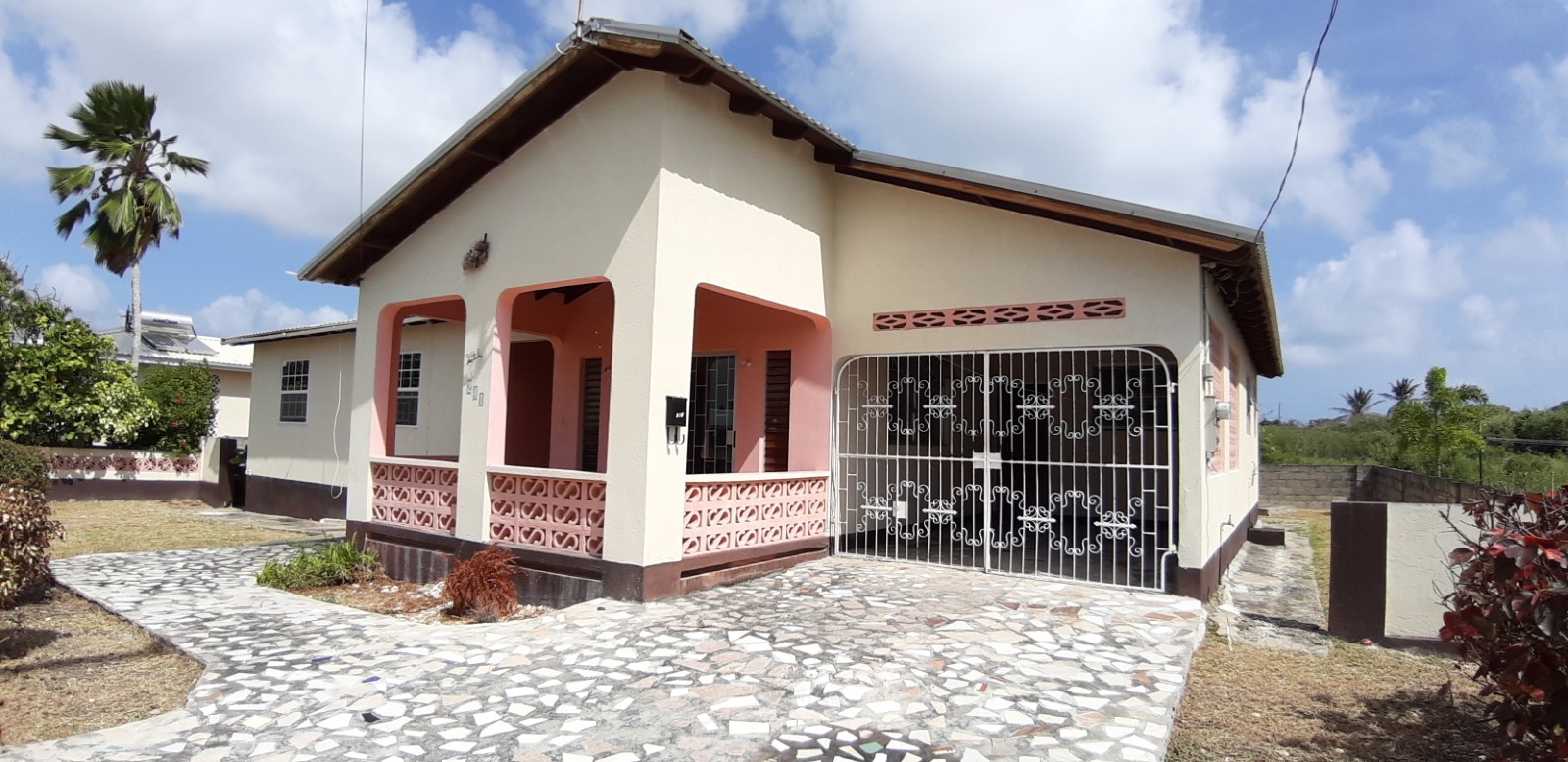 This house has 4 bedrooms, 2 bathrooms (one en-suite), a living room, a family room, an open-plan kitchen and dining area, and a laundry area which can accommodate a washing machine and a clothes dryer – it currently has a washbasin and linen/storage cupboard. The grounds are well maintained, and the property is fully enclosed. This property also features front and back patios and an enclosed garage which can be used for parking one vehicle. This house is also in close proximity to the beach – a three (3) minute drive.
